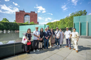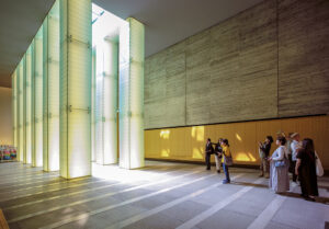 初日は、久米設計が設計した「長崎原爆記念館」(1996年)を訪れ、最後の被爆地の惨状と脅威を体験し、すぐ隣に建つ栗生明設計の「国立長崎原爆死没者追悼平和祈念館」(2003年)へ向かった。地下の追悼空間に立つ光柱の上にあるトップライトは、上空500mで太陽のような火球が炸裂したであろう爆心地の空が見えるようになっており、正面には死没者名簿と献花台があり、厳かな空間の中で平和を祈念する。多くの犠牲者が水を求めて亡くなったことから、館内はいたるるところに水が流れていて、地上に出ると大きな水盤が広がり、水盤の底には犠牲となった7万人の命を表す光ファイバーが埋め込まれている。